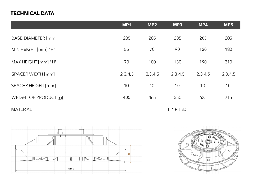 MAKS self-levelling disc is an accessory used for laying terrace on pedestals on sloping or uneven ground.